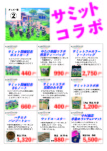今回のサミットで販売予定のグッズ一覧です。データ量を落とすため、画質や色合いが見辛くなっておりますが、ご了承ください。数量限定もございますので、お買い求めはどうぞお早めに。一部商品は、サミット後も販売継続いたします。